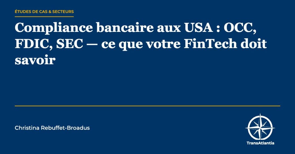 Compliance bancaire aux USA : OCC, FDIC, SEC — ce que votre FinTech doit savoir