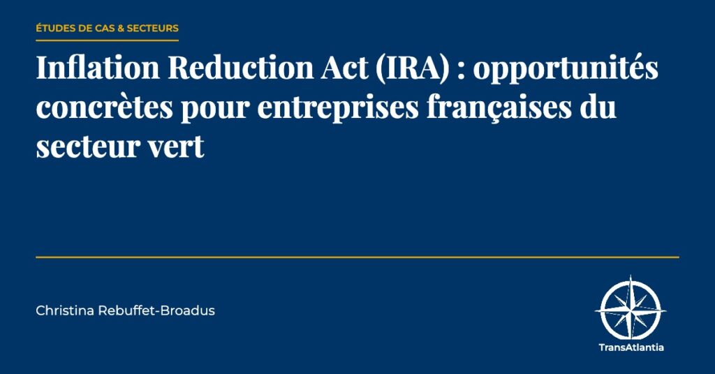 Inflation Reduction Act (IRA) : opportunités concrètes pour entreprises françaises du secteur vert